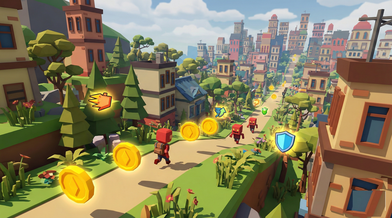 A legion of mimics—enemies that look exactly like you—are hot on your heels and blocking your path. Your mission? Navigate the dizzying heights of the city, collect every coin in sight, and use an arsenal of power-ups to stay one step ahead of the swarm.